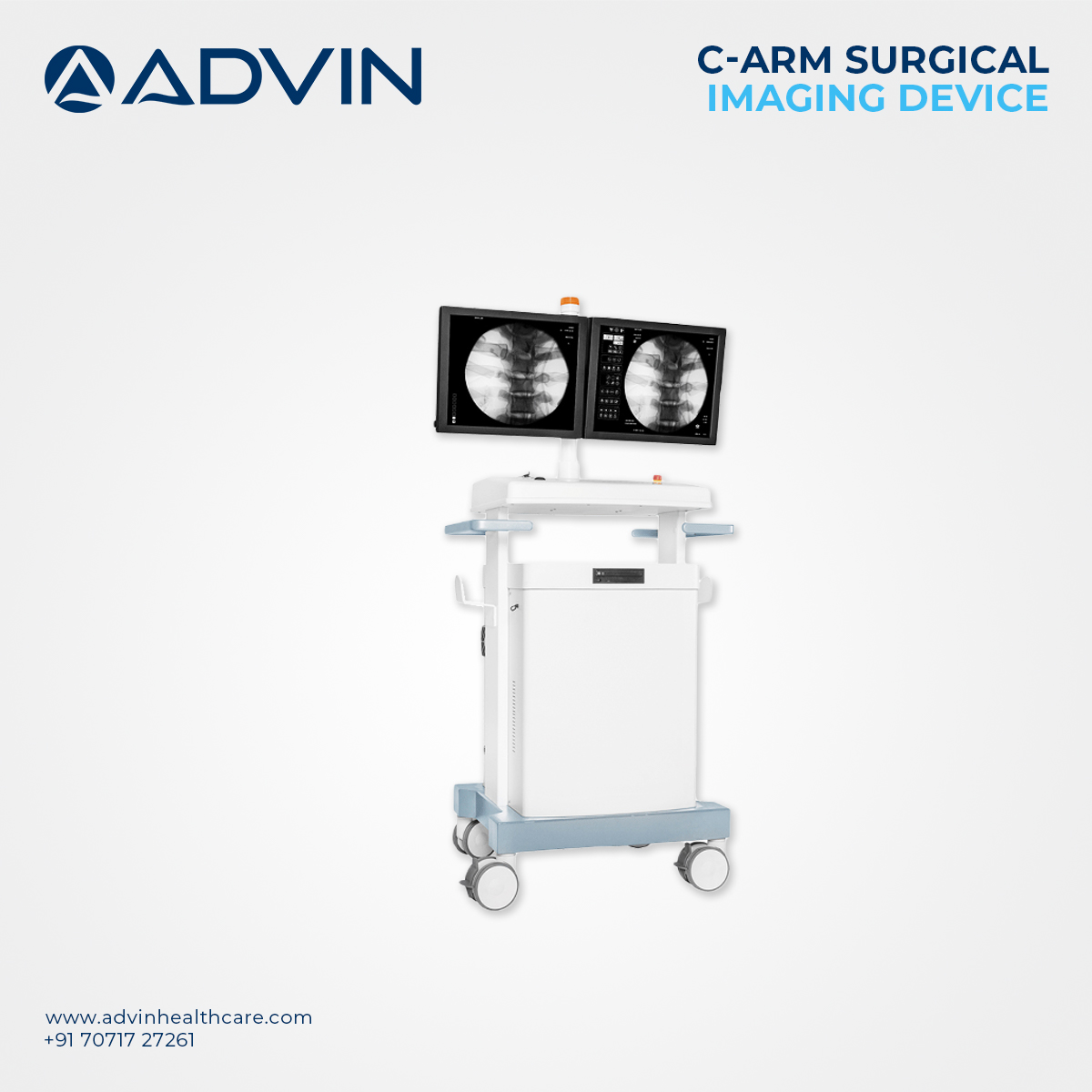 Advin Introducing Mobile C-arm. This high frequency inverter based X-ray system gives the excellent image quality. This C-arm system is mainly useful for Urology, Orthopedic, Gastro, Neurology & Pain management.