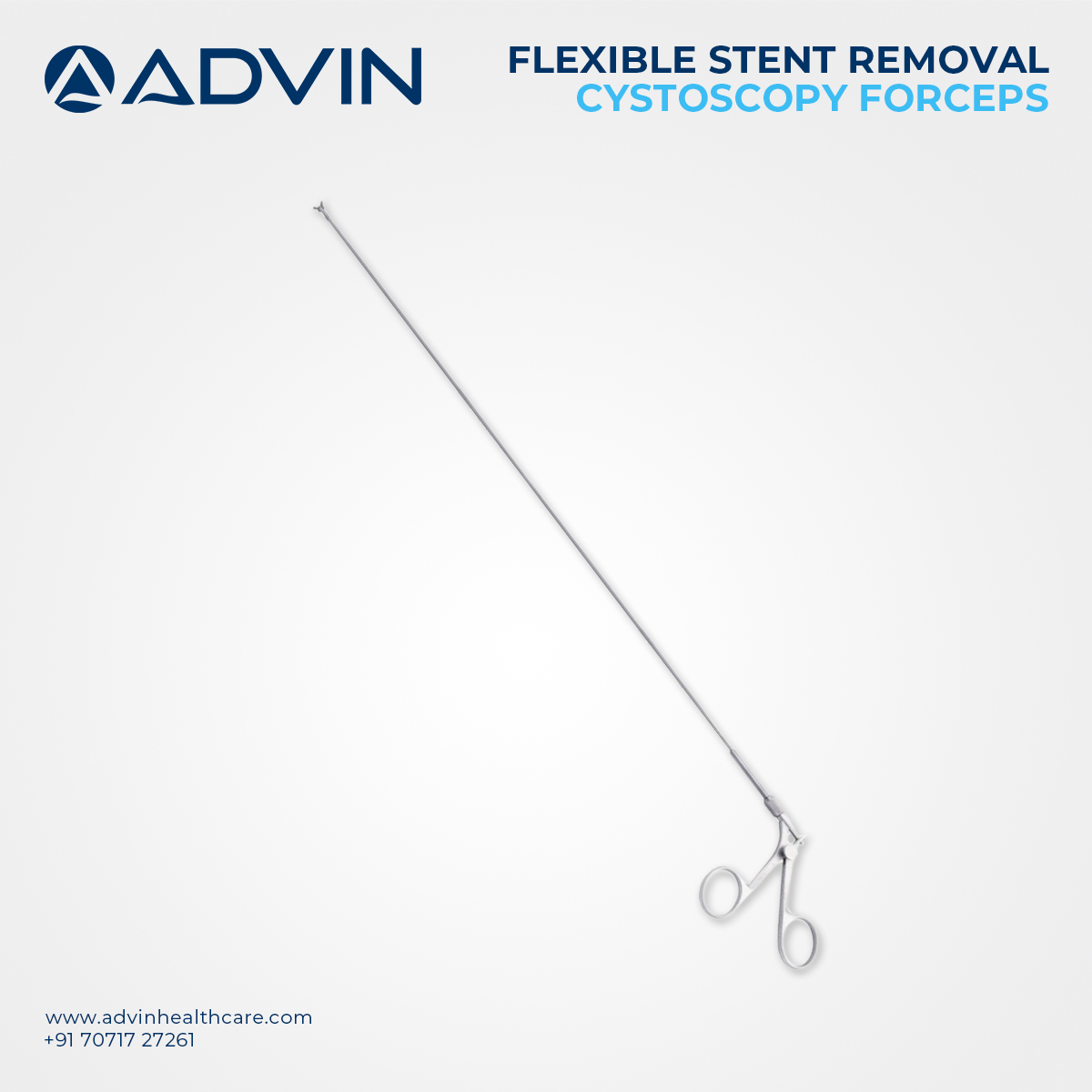 Advin Health Care provides high-quality Cystoscope Flexible Stent Removal Forceps designed for reliable and atraumatic removal of ureteral stents via flexible cystoscopy. These forceps are crafted from medical-grade materials and engineered for precision gripping and controlled retrieval of stents. Their flexible design allows seamless integration with flexible cystoscopes, enabling access to the ureter without the need for additional incisions or instruments. The ergonomic handle design supports smooth operation and enhanced control during delicate urological procedures.