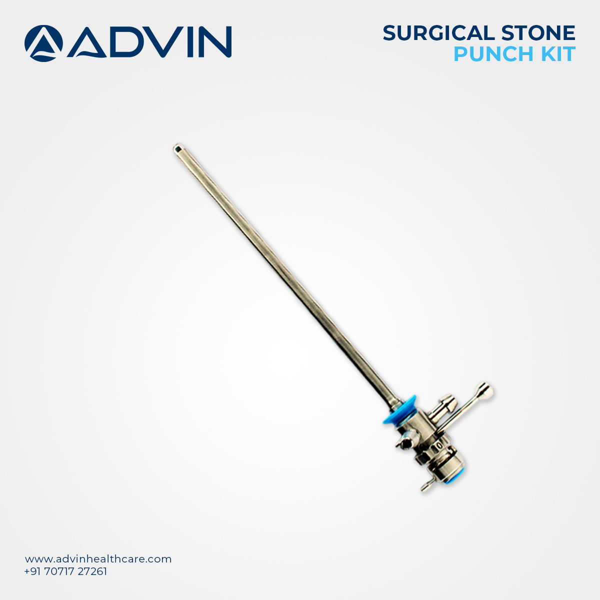 Advin Health Care offers a premium-quality Stone Punch Set designed specifically for bladder stone removal procedures. This set is used in conjunction with a cystoscope and features a precision-engineered punch mechanism to effectively crush and remove bladder calculi. Constructed from corrosion-resistant stainless steel, the instrument ensures long service life and consistent functionality. It is compatible with standard 4mm 30° telescopes and 23.5 Fr or 25 Fr cystoscopy sheaths, making it suitable for a wide range of urological applications.