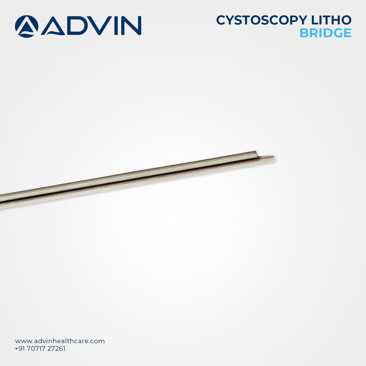 Advin Health Care manufactures the Litho Bridge to assist surgeons in effective bladder stone fragmentation procedures. This device is designed to be compatible with Pneumatic Lithotripters and standard cystoscopic sheaths (23.5 Fr or 25 Fr), enabling easy integration into existing surgical setups. It facilitates optimal visualization when used with a 4 mm 30° telescope. The Litho Bridge is autoclavable, highly durable, and built for repeated use, ensuring excellent utility and compatibility with well-known brands like Karl STORZ and Richard Wolf.