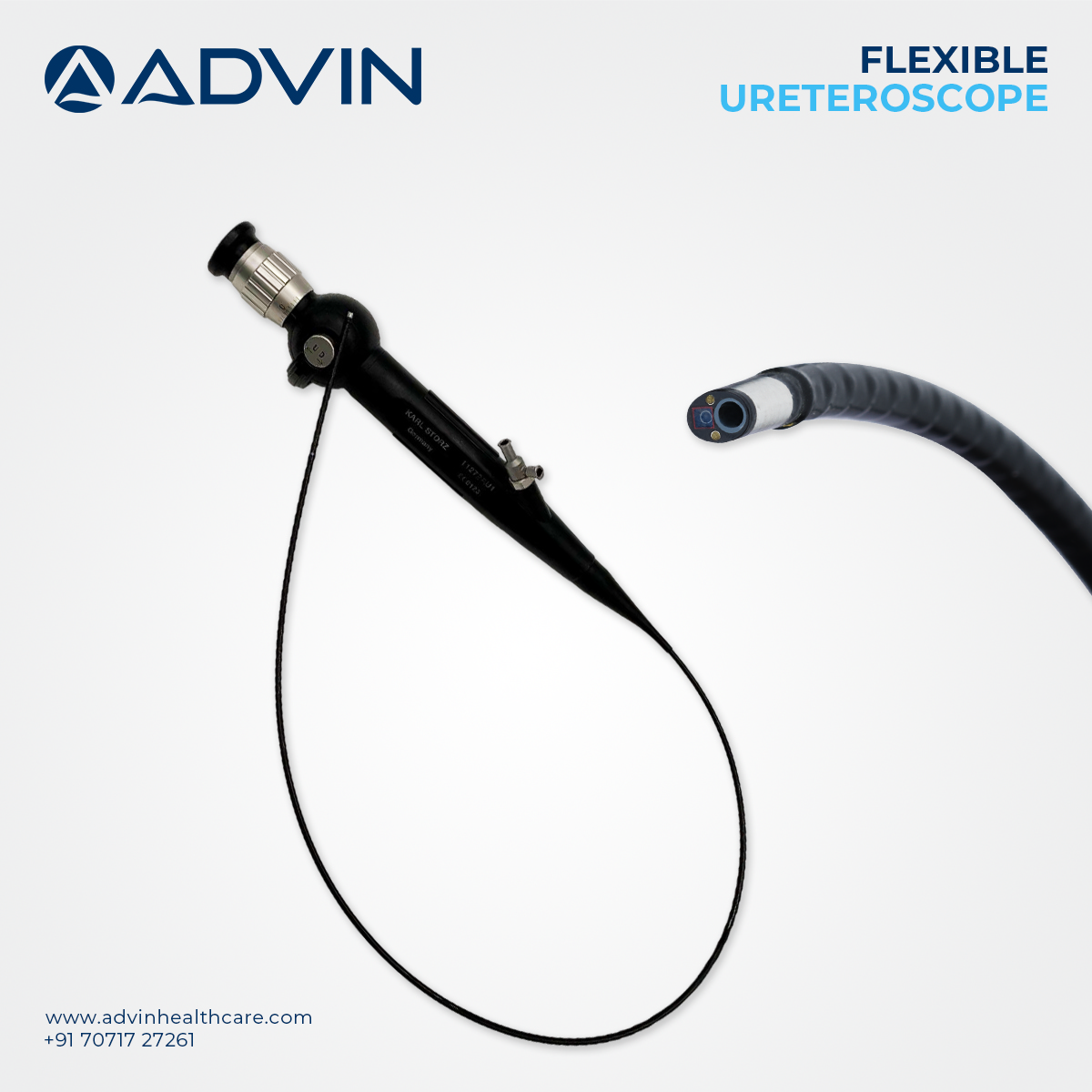 Advin Health Care manufactures the Urology Flexible Ureteroscope with high-quality materials and precision engineering to ensure optimal performance during urological procedures. The flexible shaft enables smooth navigation through complex and narrow passages within the urinary system. This flexibility improves access to hard-to-reach areas, enhancing the effectiveness of diagnostic and therapeutic interventions. The ureteroscope is designed for durability, clear visualization, and ease of use, making it a reliable tool for urologists.