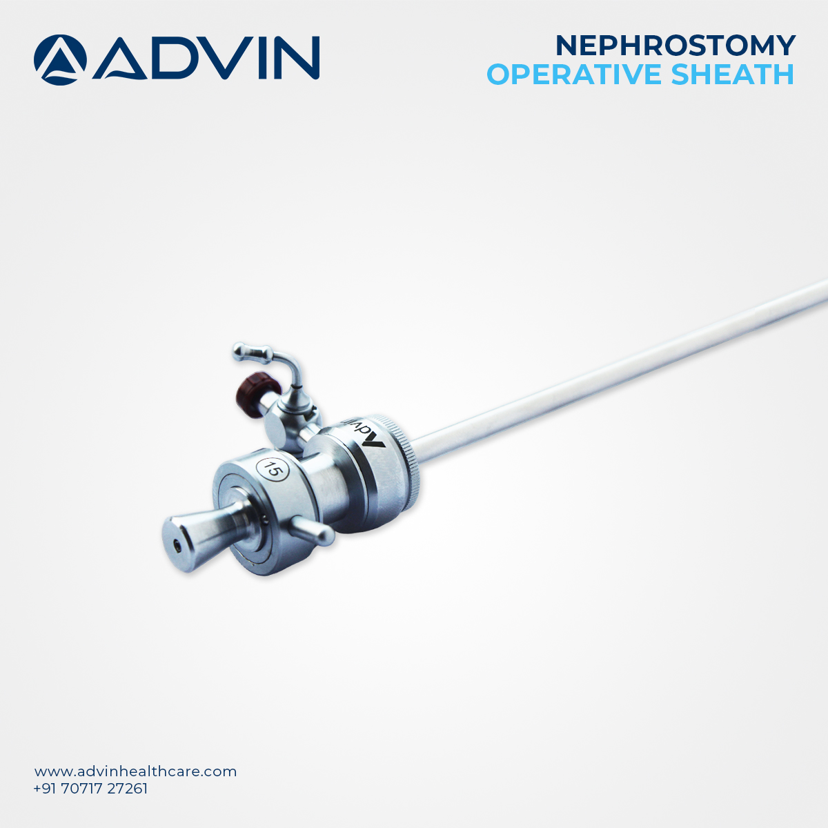 The PCNL Operative Sheath is a critical component in urological surgeries involving kidney stone extraction. Manufactured by Advin Health Care with adherence to international standards, it is designed for percutaneous access during PCNL. The sheath allows effective drainage, continuous irrigation, and instrument passage during the procedure, minimizing intraoperative complications. Its ergonomic and durable construction improves procedural efficiency and patient outcomes.