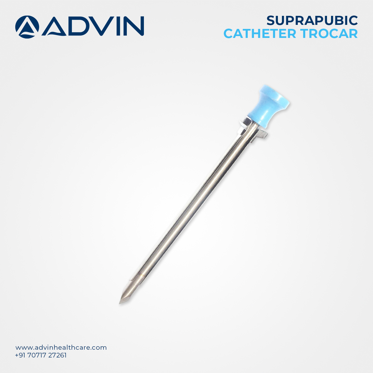 SPC Trocar, manufactured by Advin Health Care, is designed for effective and minimally invasive suprapubic catheter placement. The trocar includes a sharp, durable stainless steel tip and a supporting cannula that ensures precision during insertion. Its ergonomic handle provides control and stability, reducing the risk of injury during the procedure. The instrument is autoclavable, reusable, and corrosion-resistant, making it ideal for repeated use in hospital and surgical environments.