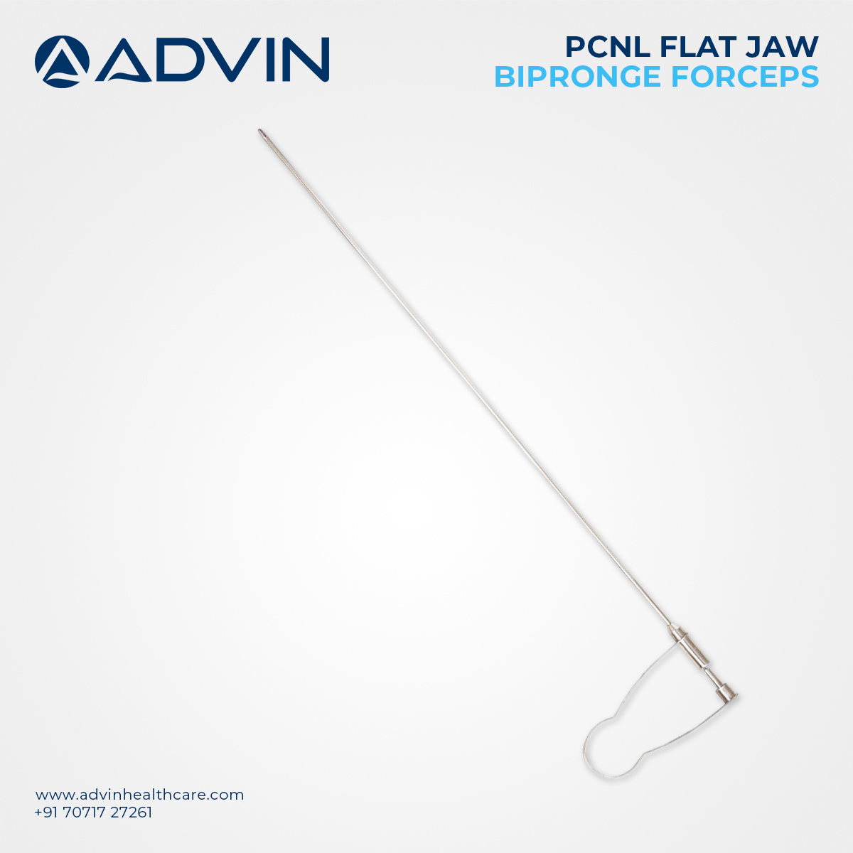 Advin Health Care manufactures PCNL Flat Jaw U Handle Forceps with international quality standards for reliable use in percutaneous nephrolithotomy (PCNL). These forceps are specifically designed to effectively grasp and extract stone fragments following lithotripsy. The flat jaw design ensures a secure hold on the stones, while the ergonomic U handle provides excellent control and maneuverability for the surgeon. Constructed with high-grade materials, these forceps offer long-lasting performance, corrosion resistance, and are reusable after sterilization.