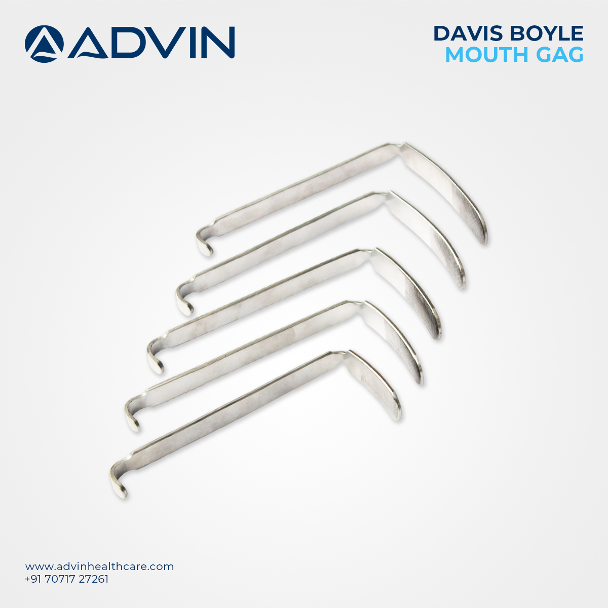 Advin Health Care manufactures the Davis Boyle Mouth Gag with 5 blades adhering to international quality standards. This mouth gag is widely used in ENT and oral surgeries to facilitate access to the oral and pharyngeal regions. The adjustable blades provide flexibility for different mouth sizes and surgical requirements, ensuring patient comfort and surgeon convenience. The durable construction and smooth finish help reduce tissue trauma during procedures, making it a reliable tool in surgical settings.