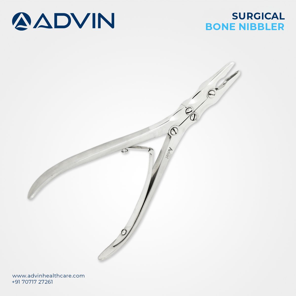 Advin Health Care offers a high-quality Bone Nibbler designed to meet international medical standards. The double-action mechanism reduces the effort required by the surgeon while maintaining accuracy in bone cutting. The straight Bone Nibbler is ideal for general orthopedic use, while the curved type is suited for specialized areas like spinal surgeries. Available in multiple sizes, it supports a wide range of surgical needs with a durable and ergonomic design for comfortable handling.