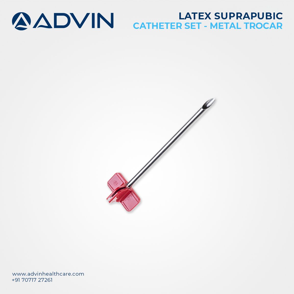 Advin Health Care manufactures the Suprapubic Catheter Set – Latex with Metal Trocar according to international medical standards. The latex catheter is soft and flexible, ensuring patient comfort during extended use. The metal trocar provides a reliable and sharp instrument to facilitate smooth insertion into the bladder via the abdominal route. This set is sterile, ready-to-use, and designed for both emergency and routine suprapubic catheterization. It offers a dependable solution for managing urinary retention or obstruction when urethral access is compromised.