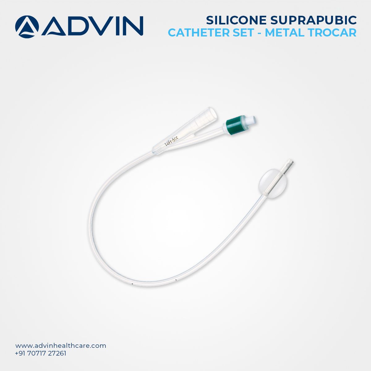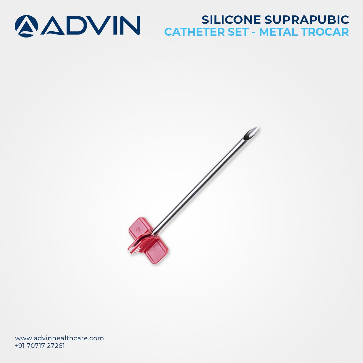 Advin Health Care offers the Suprapubic Catheter Set – Silicone with Metal Trocar, designed in accordance with international medical standards. This set features a silicone catheter that ensures biocompatibility and patient comfort, along with a strong metal trocar for safe and efficient insertion. The catheter is ideal for long-term or short-term suprapubic bladder drainage and is especially useful in patients where transurethral catheterization is not possible. The device is supplied sterile and ready for use, offering clinicians a reliable solution for urinary drainage.