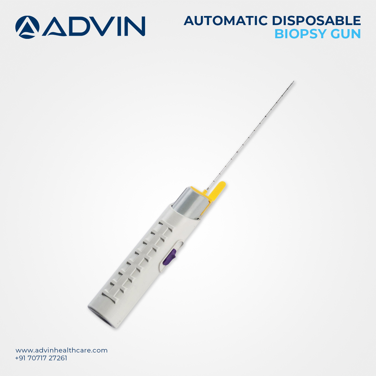Advin Health Care manufactures the Automatic Biopsy Gun with international quality standards to support clinicians in acquiring reliable tissue samples for histopathological analysis. The gun features a spring-loaded mechanism that enables precise and quick tissue penetration and sample collection. Its ergonomic design and compatibility with various biopsy needles make it a versatile choice for multiple clinical applications. The instrument enhances procedural safety, reduces tissue trauma, and ensures consistent sampling accuracy.